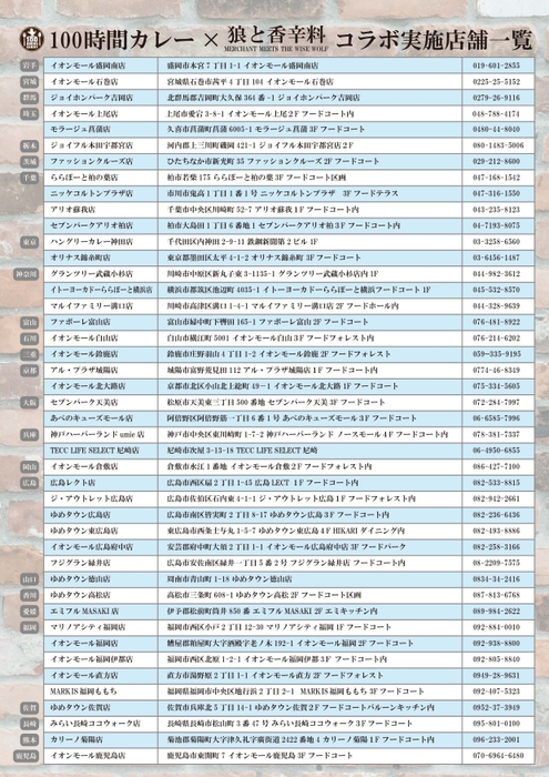 店舗一覧 ⇒ https://100hourscurry.jp/shop/