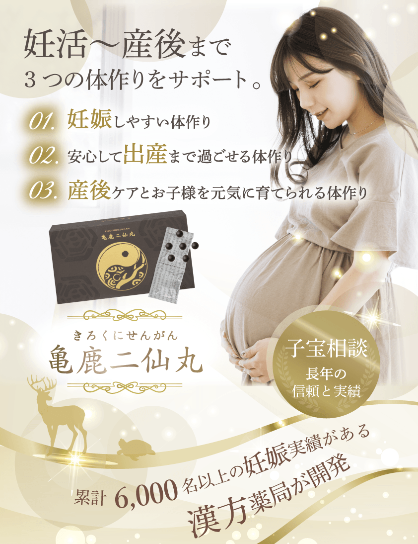 「亀鹿二仙丸(きろくにせんがん)」は妊活だけではない。産後までサポート