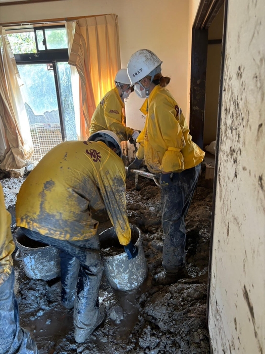 2週連続で活動に参加し、今回は副リーダーを務めた高島康平さん(法学部4年)は「今回の活動では無心に土砂をかき出し続けました。豪雨災害は発生から1カ月間がボランティア活動のピークで依頼も多いですが、今後は報道も減ってボランティアも減っていくと言われています。私たちは今後も情報発信をしながら被災地に寄り添った活動を行っていきたい」と話していました。