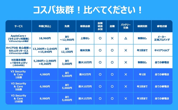 セキュリティソフトウェアとしての高い性能に加え、物理的な保護も一体化した「V3 Security & Care」は、デジタル社会を安心して過ごすための新たな選択肢となります。
