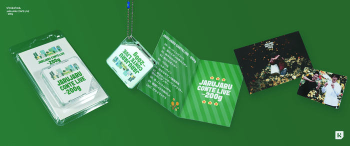 日本初となるジャルジャルのKiTpage「-200g」は、本体に収録されるライブフォトブックの他に、ステッカー、フォトカードなどが同封されており、100枚以上にも及ぶ高画質のライブ写真やメンバーが直接録音した音声コメントも独占収録され、ファンにとって特別なアイテムとなるだろう。