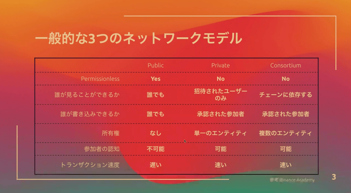 ブロックチェーンにはプライベート型、コンソーシアム型、パブリック型と3種類ありますが、閉ざされたチェーン内でだけ使われるマイナーな線路もあるかもしれないけど、メジャーに使われることを考えるなら最終的には鉄道理論に基づき「いかに他と繋がっていけるのか」が重要だ、と。