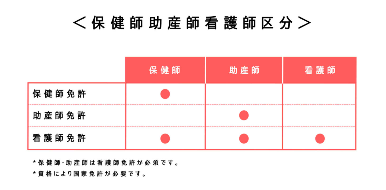病院では看護師さん、産婦人科では助産師さん、行政機関の保健所や企業などでは保健師さん、呼び方は違えど、なんとなくイメージは近いですよね。