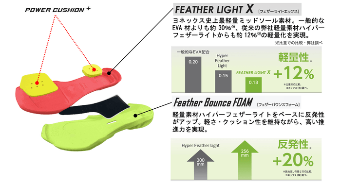 2.「フェザーライト エックス」と「フェザーバウンスフォーム」採用で軽量性と反発性を両立