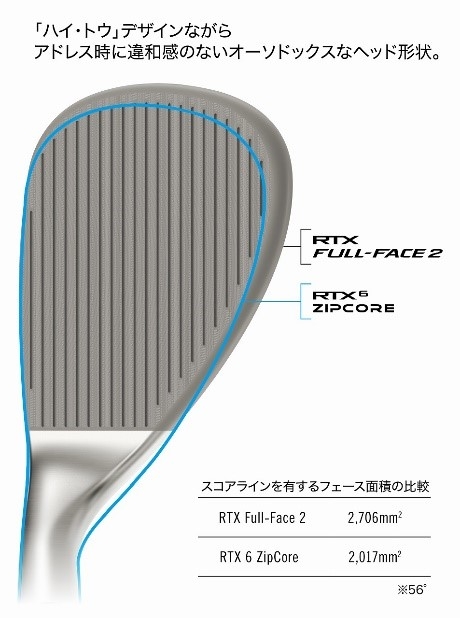 フェーストウを高くすることで、フェースを開いた時に操作性の高いアプローチショットを安定して生み出せるよう設計しました。