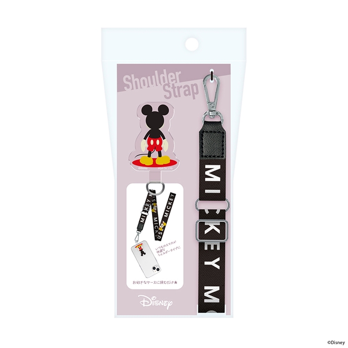 お気に入りのケースに挟むだけで快適なショルダータイプに切り替え可能な、ディズニーキャラクターデザインのストラップホルダー付 ショルダーストラップです。ストラップホールが無くても付属されている「ストラップホルダー」をケースに挟むだけでストラップを取り付けする事が可能です。(※お手持ちのケースや充電口の形状によってはホルダーが収まらない場合があります。)ショルダーストラップは、首掛けでの長さ調整も可能です。