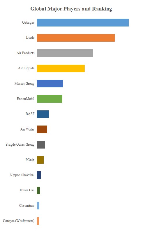 YHResearchのトップ企業研究センターによると、希ガスの世界的な主要製造業者には、Qatargas、Linde、Air Products、Air Liquide、Messer Group、ExxonMobil、BASF、Air Water、Yingde Gases Group、PGnigなどが含まれている。2023年、世界のトップ5企業は売上の観点から約72.0%の市場シェアを持っていた。