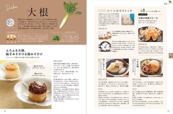 いくつかの野菜は、コラムで本田明子さんおすすめの野菜のストック方法を紹介しています。ストックした野菜を使って簡単に作れるレシピも紹介。