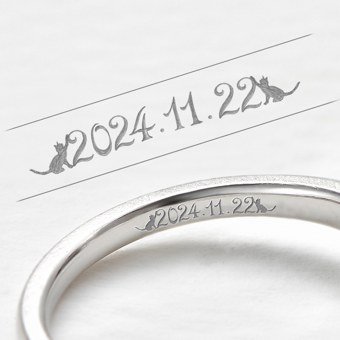 ケイウノでは、イニシャルや日付の刻印が可能なのはもちろん、直筆のメッセージやふたりの想い入れのあるモチーフを自由に刻印することが可能。刻印のデザインは、店頭のデザイナーがふたりの馴れ初めや想い出、共通の趣味や印象に残っているエピソードなどを伺いデザイン画を描いてご提案します。ふたりのためだけに生まれた刻印は、その指輪をぐっと特別な存在にしてくれます。ケイウノを利用いただくカップルの多くが選ぶ、人気のサービスです。