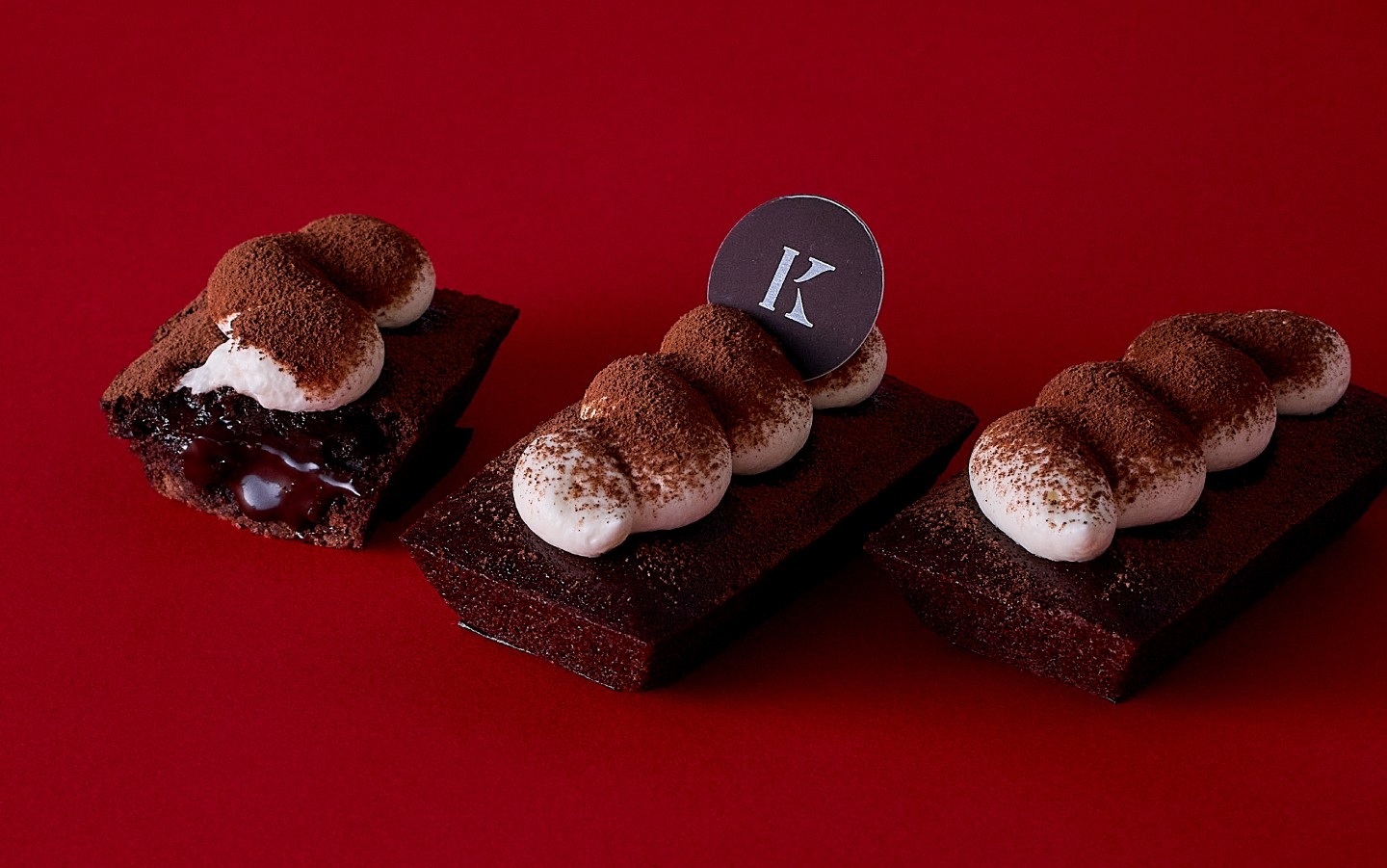 芳醇な発酵バターの香りが風味豊かに広がる焼きたてショコラフィナンシェのサクッとした食感は出来立てならでは。ふんわり生クリームと、中に閉じ込めたガナッシュチョコレートのとろっとした食感と濃厚で香高いチョコレートの味わい、“サクッ、ふわっ、とろっ”と異なる食感をお楽しみいただけます。