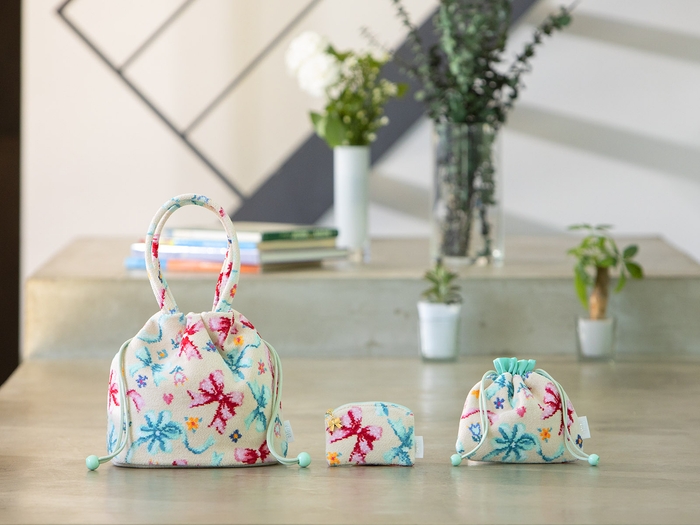 おしゃれなカフェやショッピングに出かけるときなどに連れて行きたい、ふんわりとした丸みのある巾着バッグ。甘く優しいモチーフが、春の軽やかなワントーンコーディネートのポイントとなって、かわいい雰囲気を演出してくれます。巾着の口が開きやすく、モノの出し入れもスムーズで、フレッシュなミントグリーンの裏地がドット柄なのも楽しい気分に。底マチが広くて自立するので使いやすく、特別なお出かけシーンはもちろん、日常使いにも活躍してくれます。