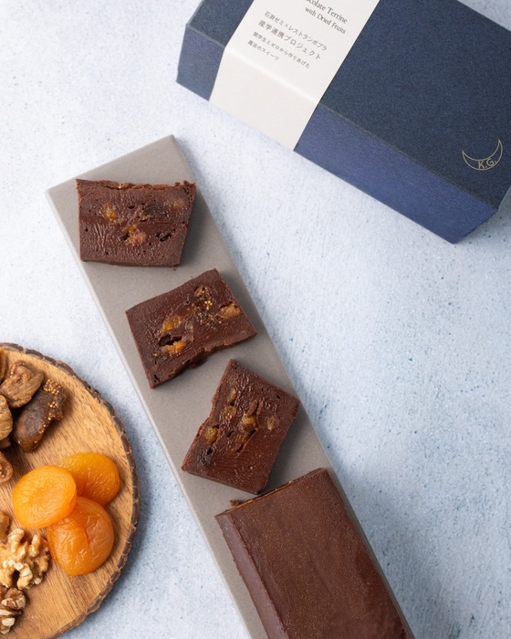 また、「濃厚ショコラとドライフルーツのテリーヌ」は、SDGs貢献だけではなく、酒粕はビタミンB1・B2・B6や食物繊維など、美容と健康に良い多くの栄養素を含んでおります。濃厚なチョコレートと酒粕のほのかな風味とコク、ドライフルーツの酸味が絶妙にマッチし、深い味わいを実現しています。