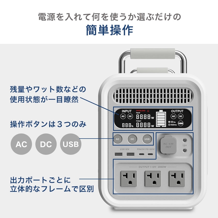 ・圧巻の大容量2,258Wh / 定格出力 2,000W(最大4,000W)