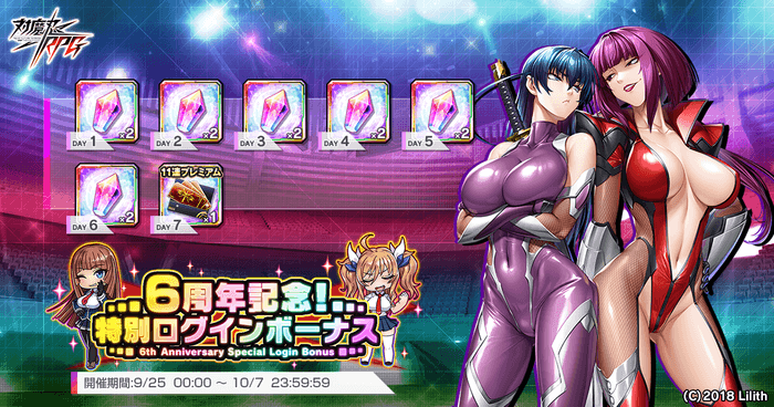 『対魔忍RPG』にて6周年記念特別ログインボーナスを開催!さらにセレクションプレミアムガチャ第2弾も開催中!
