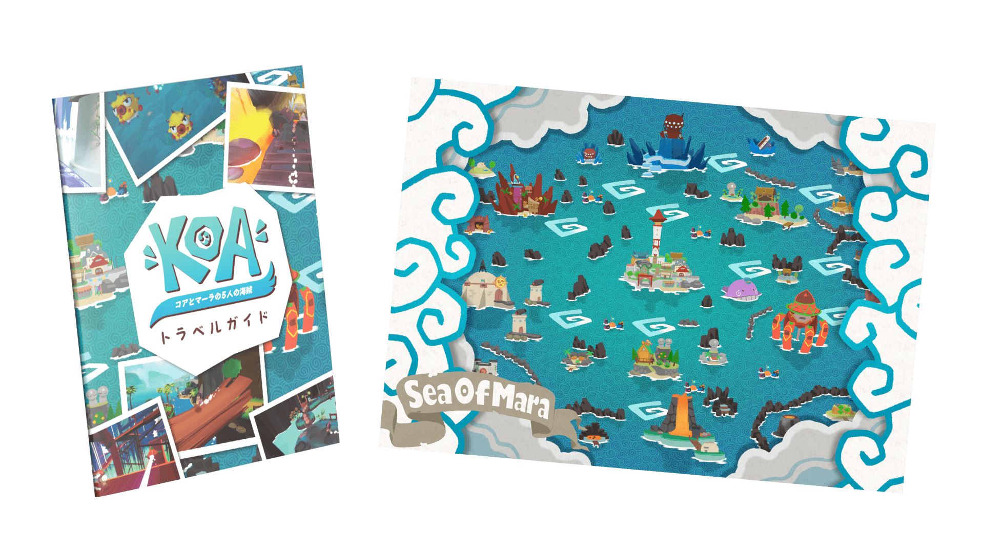 Nintendo Switch、PlayStation 5 パッケージ版は、初回版の限定特典として、ゲームの内容がわかる「トラベルガイドブック」、群島マーラをデザインした「オリジナルマップ」が付属されます。