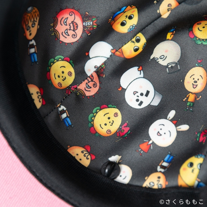 個性豊かなキャラクターたちのオリジナル総柄生地で仕立てたバケットハット。