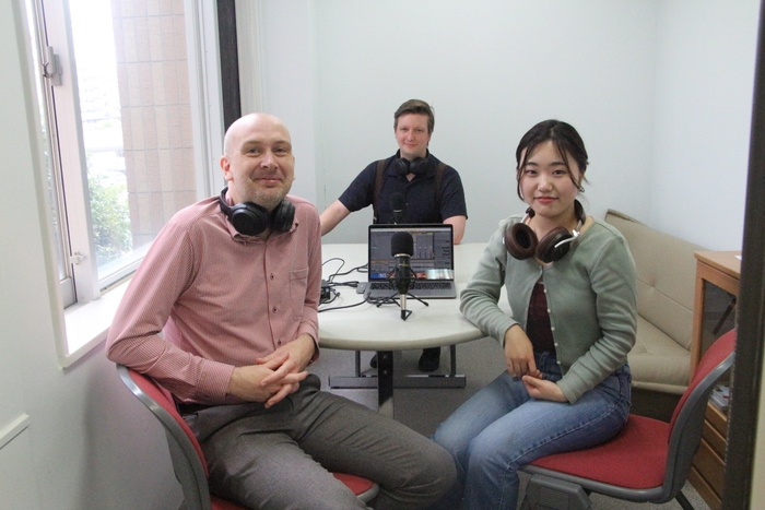 担当教員の Johnston Seamus 講師は「麗澤大学の多様なプログラム、活動、留学生を、教職員を広く世界に伝えていきたい」と語ります。有志学生代表の国際学部 4 年次生の水野華乃音(みずのかのん)さんは、「英語に出会って人生観が変わりました。私たちの生活において身近なモノである Podcast 配信“Reitalk”を通して、多くの方々が英語に気軽に触れてほしい」と言います。