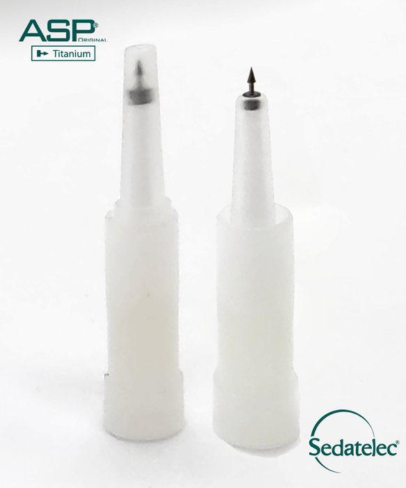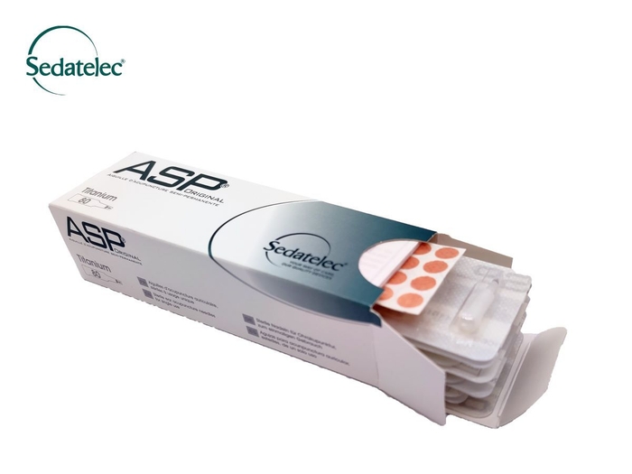 ASPニードルは、Sedatelec社が開発した特殊な耳介療法用の鍼で、精密な設計と高い効果が特徴です。独自の針先形状と素早く刺鍼できるインジェクターを用いることにより、最小限の刺激で最大の効果を引き出すことができる世界で認められた鍼治療に用いられる耳鍼です。