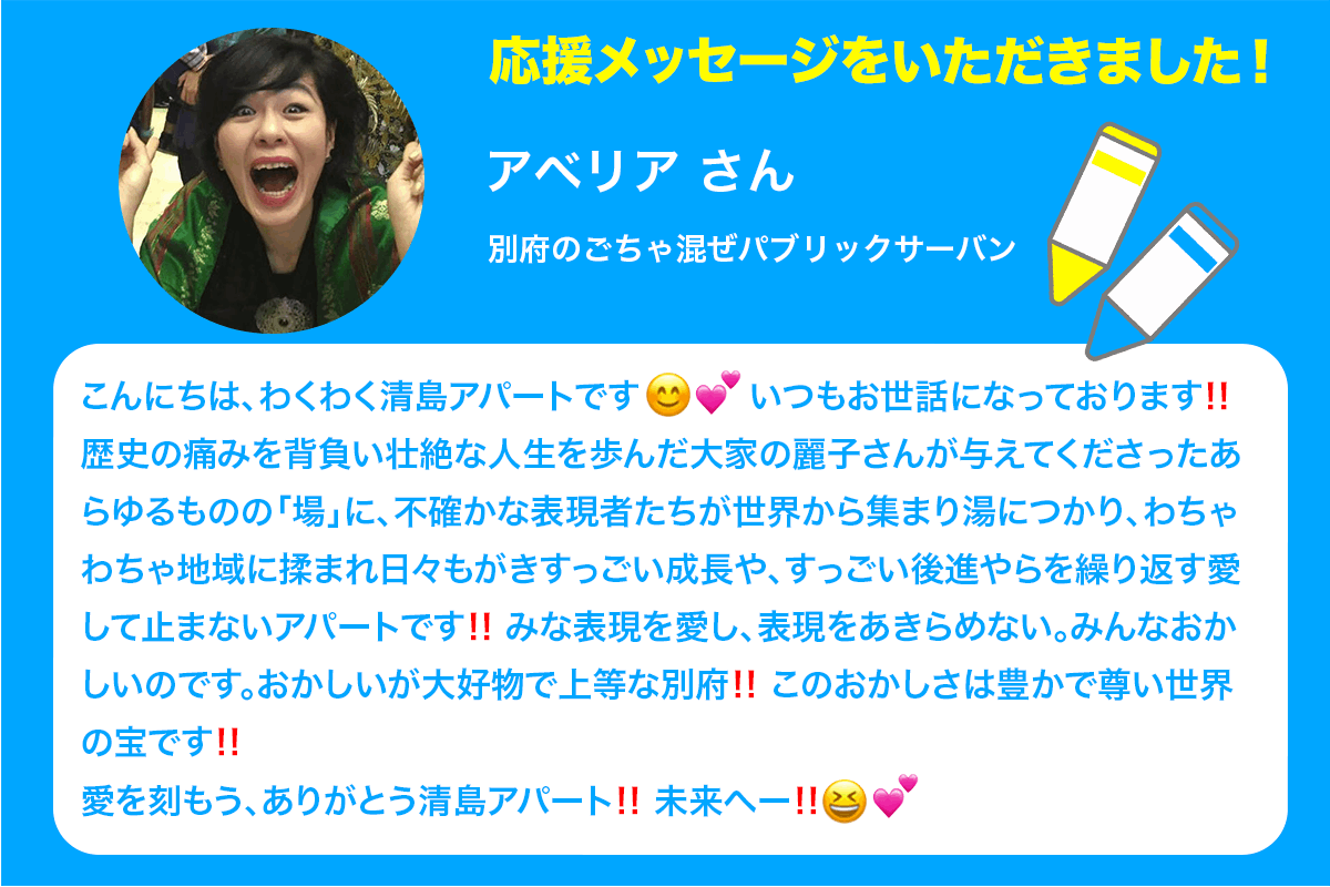 皆さまとともに、清島アパートの「これから」を創っていきたいと思います。