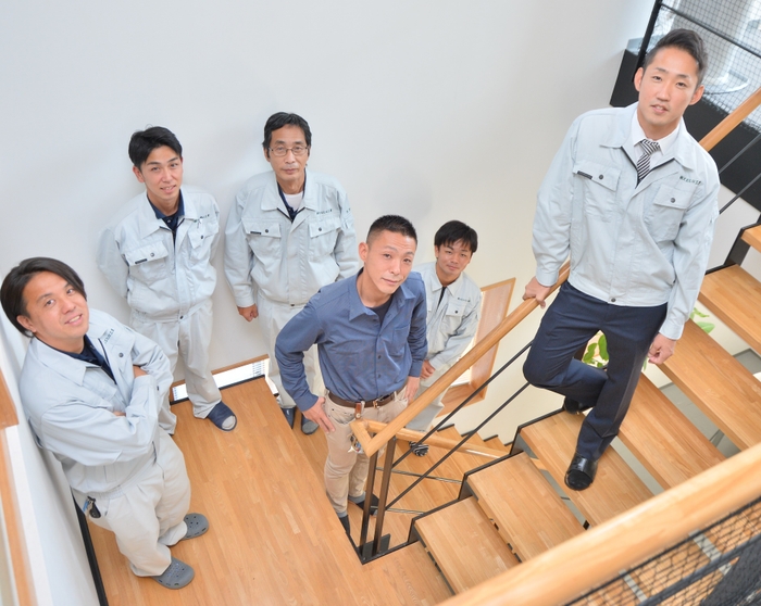 創業当時は、アスファルト防水工事が専門で、職人としてキャリアをスタートした先代社長(現社長の父・末宏氏/写真中央)が職人らをまとめていた会社ですが、次第に、営業・現場管理を行うのがメインの会社へと変化していきます。