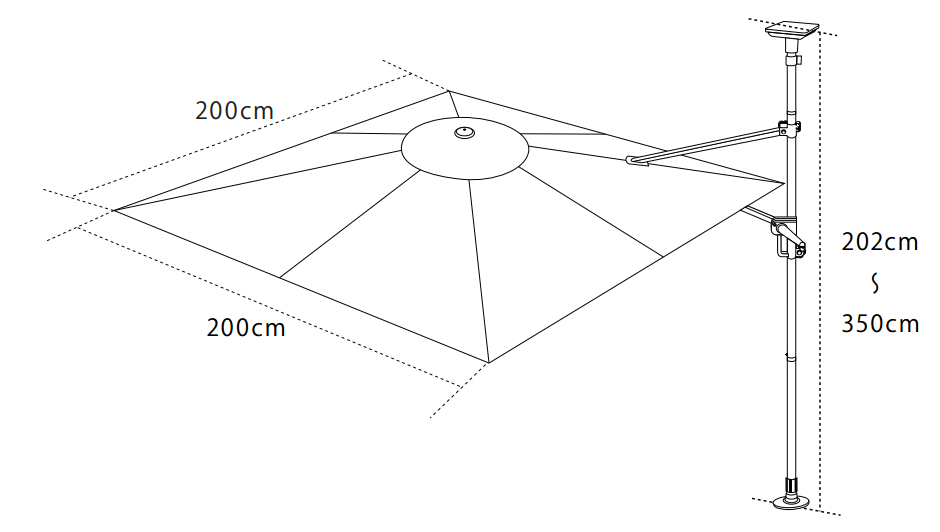 ガーデンパラソルは、従来パラソルの柱を支える為に重たいおもりを必要としていました。パラスマートは、柱をつっぱり固定式にすることでおもりを必要としない画期的なパラソルです。