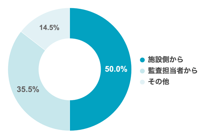 「施設側から監査担当者に対しデジタル監査を打診したらOKが出た」が半数の50%という結果になりました。今回判明した「デジタル監査実績のある自治体」に所在していれば、現在デジタル監査を実施していなくても、施設側より打診すればデジタル監査可能な場合もあると考えられます。