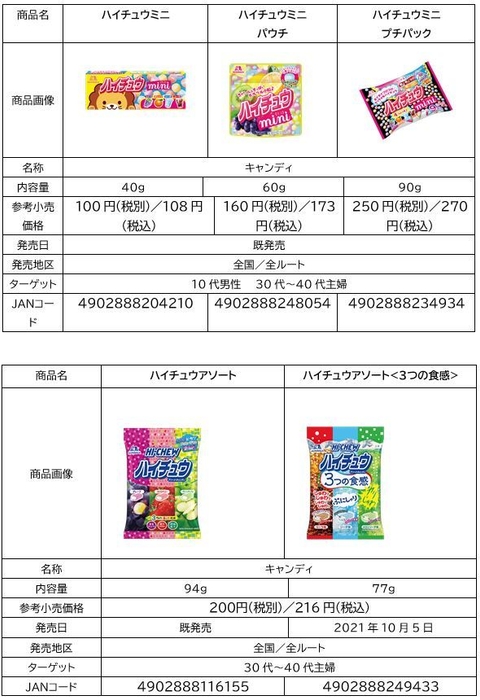 しゅわうまイチュウ各種、ハイチュウプレミアム各種、ハイチュウアソート各種、