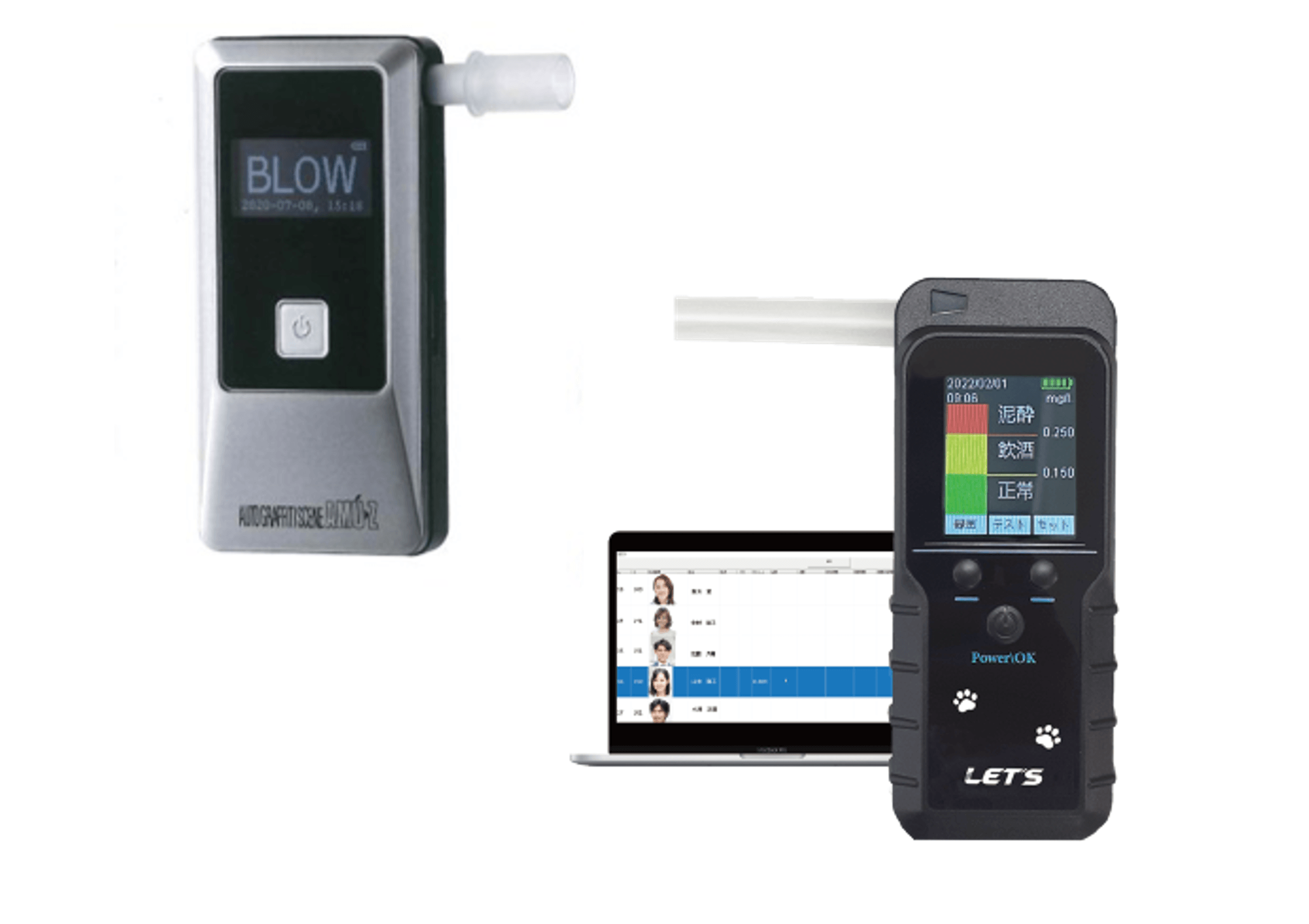 PALTEKでは、Bluetoothを使用してスマホアプリと連動してアルコールを検知する製品や、出退勤時の計測に便利な据え置き方の製品などを取りそろえています。