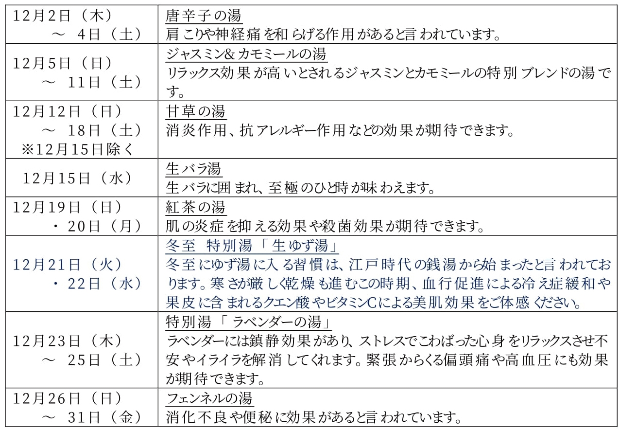 冬至特別湯「生ゆず風呂」をはじめいろいろな薬用風呂で日ごろの疲れを解消しよう!
