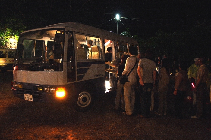 宿泊施設➡送迎車へ乗車➡散策路入り口(徒歩)➡夜店広場➡広場から送迎車乗車➡宿泊施設