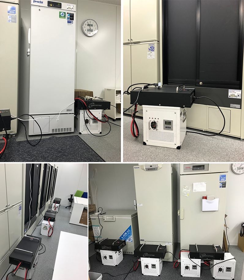 オンリースタイルでは、既存の商品エコパワーシリーズに加えて、ワクチン保管用フリーザーのバックアップ電源用途のお客様に向けて、突入電流に対応した専用の商品を用意し、厚生労働省が指定する4機種に対応を可能とした。万が一停電が発生した場合でも標準の構成で約6時間のバックアップを可能としている。