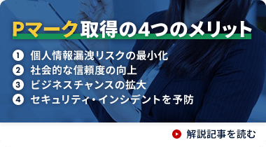 こうしたリスクを回避するために、PマークやISMS(Information Security Management System)といった第三者機関の外部監査を受け、個人情報の適正な取り扱いや情報セキュリティを確保することが、企業活動を継続するうえで必要不可欠となっています。