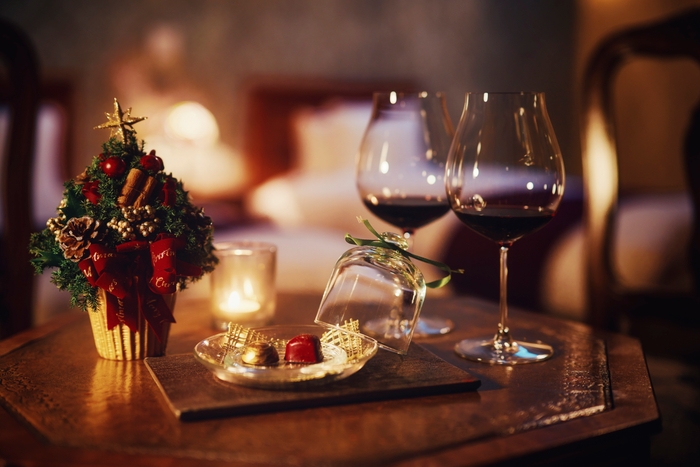また、クリスマス限定のランチ・ディナーコースに加え、クリスマスのひと時を大切な方と淡路島で ごゆっくりお過ごしいただける『Auberge Christmas Stay』プランも登場。3棟の中からお好みのディナーをお選びいただきます。クリスマス限定のディナー時には、料理の風味を引き立たせ、全体の味わいをワンランク高めるソムリエ厳選のペアリングワイン3種をご用意。サラダやシーフードには軽やかな白ワイン、濃厚なソースや肉料理にはフルボディのワインなど、料理とワインのマリアージュを満喫いただけます。ディナーの後は、フランスの邸宅を想起させる部屋でごゆっくりお過ごしいただき、落ち着いたウッディ系の香り漂う檜風呂でリフレッシュいただけるなど、非日常空間で素敵なクリスマスをご堪能いただけます。
