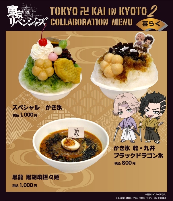 第一弾に続き、今回も主人公「花垣武道」をはじめ「佐野万次郎」「龍宮寺堅」「場地圭介」「松野千冬」「三ツ谷隆」ら6人のイベント限定描き下ろしイラストを制作。イベントタイトルにもなったかき氷をメインとしたコラボフードやイベント限定のコラボグッズなど盛りだくさんのイベントになっております。
