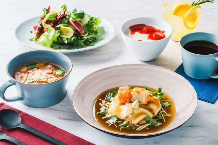 ・内容:加賀棒茶と生麩のリゾット、サラダ、スープ、ヨーグルト
