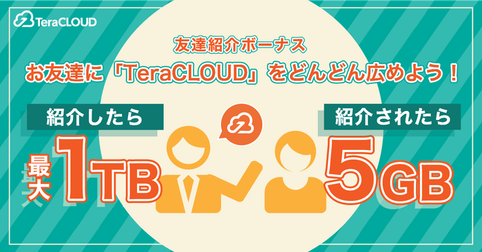 紹介者様には登録していただいたお友達の数だけ容量を追加!TeraCLOUDをお得に使えます。