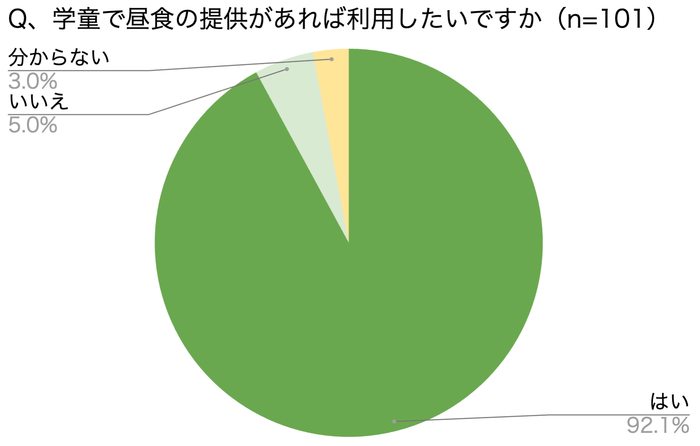 ●学童保育で昼食の提供を利用したい保護者の方は全体の約9割でした