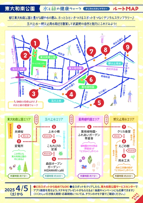 4月5日(土)から東京都公園協会公式アプリ「東大和南公園とその周辺の様々なスポットを巡るデジタルスタンプラリー」が始まります。
