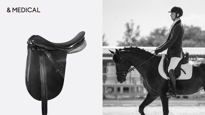 KURA SEATシリーズは、この鞍の形状からヒントを得て開発しました。椅子の平坦な座面と違い、本商品はお尻を前後からすっぽりと包み込んで安定させ、同時に骨盤を立たせて美しい姿勢を保つ立体的な座面が特長です。