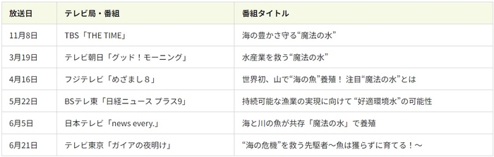 好適環境水を使った岡山理科大学の陸上養殖研究に対する全国ネットのテレビ局の取材・放送が相次いでいます。2023年11月8日にTBSの情報・報道番組「THE TIME」で放送されたのに続いて、今年に入ってから6月21日のテレビ東京「ガイアの夜明け」まで立て続けに6件の番組の取材が続きました。