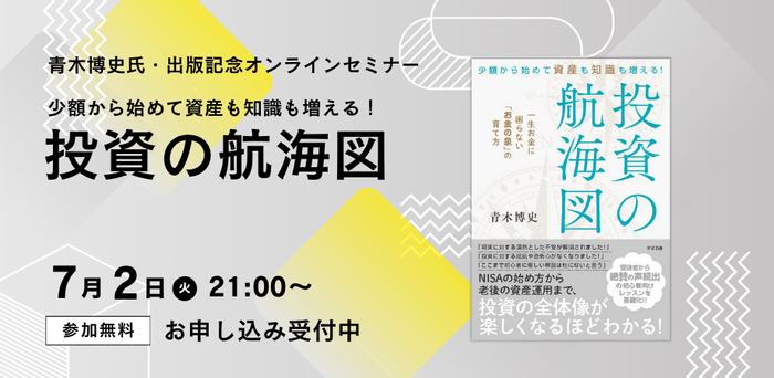 青木博史氏著書『少額から始めて資産も知識も増える! 投資の航海図』発売記念【無料オンラインセミナー】7月2日(火)21時開催!