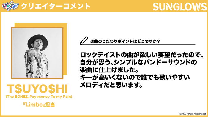 〜T$UYO$HI「Sunglows『Limbo』」担当〜