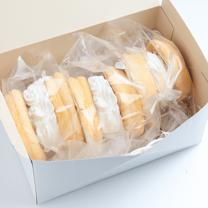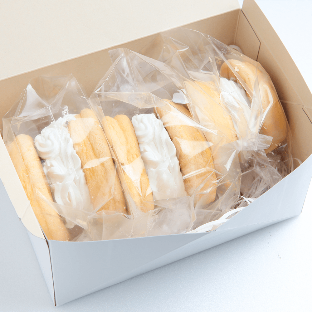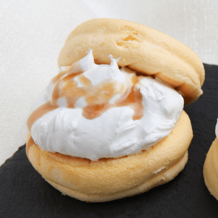 当店パティシエがメレンゲから1枚ずつ丁寧に焼き上げた「ふわふわのパンケーキ」と、3種類のお味が楽しめる生クリーム、解凍時間によって変わる食感をぜひお楽しみください。