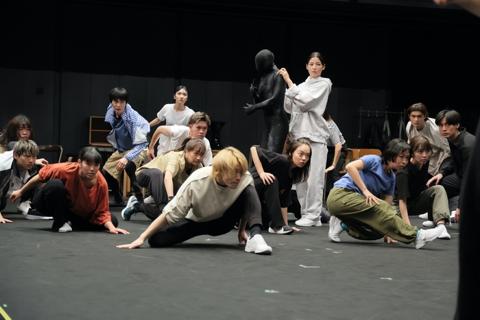 緊張感があり動きも激しいダンスのため、休憩に入るとキャスト陣からは安堵のため息や「疲れた!」という声も上がるが、すぐに各所で振り付けの練習や小物の設置場所についての確認が始まる。