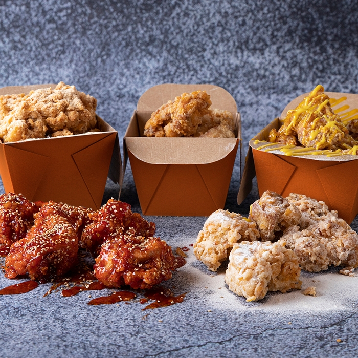 揚げたての、ジューシーでザクザク食感のチキンは、流行りの甘辛ヤンニョムチキンをはじめ、全5種類のフレーバーをご用意。他にも、韓国チキンと合わせて伸びるチーズが魅力的なパネチキン、UFOチキンなどもご用意しております。