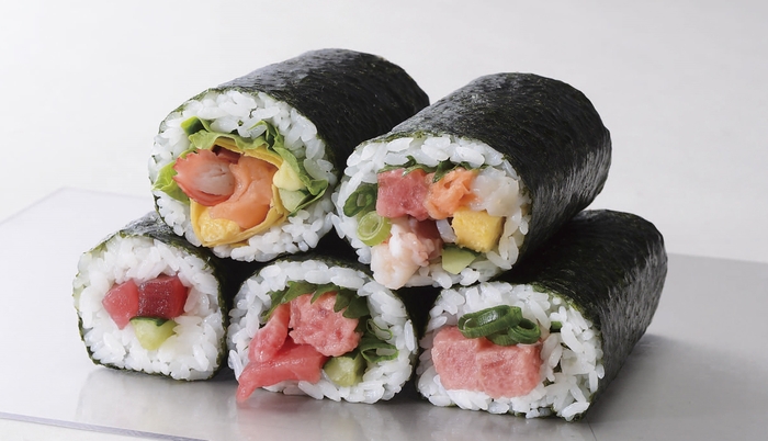 近畿圏では海老・たたきまぐろ・サーモンなど5種類の海鮮がたっぷりと入った「彩り海鮮太巻」など最大26種類の恵方巻を、首都圏では北海道産帆立・まぐろ・ねぎとろ・サーモンなど海鮮がたっぷり入った「北海道産帆立入り海鮮太巻」など、最大13種類の恵方巻をバリエーション豊富に取りそろえます。