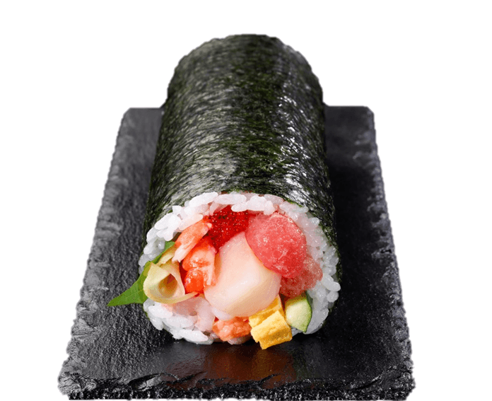 北海道産帆立・まぐろ・ねぎとろ・サーモン・とびっこなど海鮮がたっぷりと入った具だくさんの太巻。