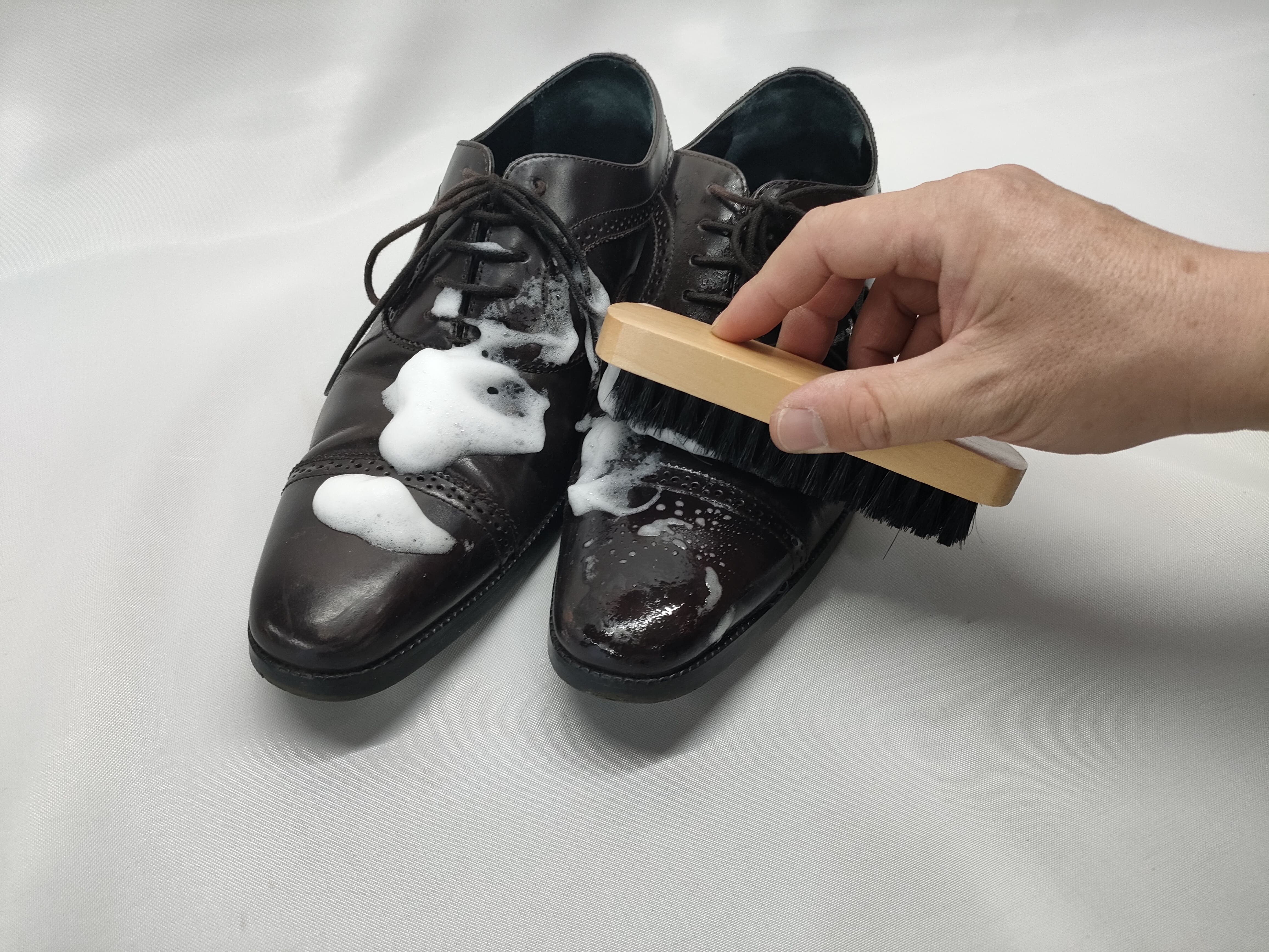 - 手早くブラシなどで軽くこする :汚れが気になる部分を手早く軽くこすります。