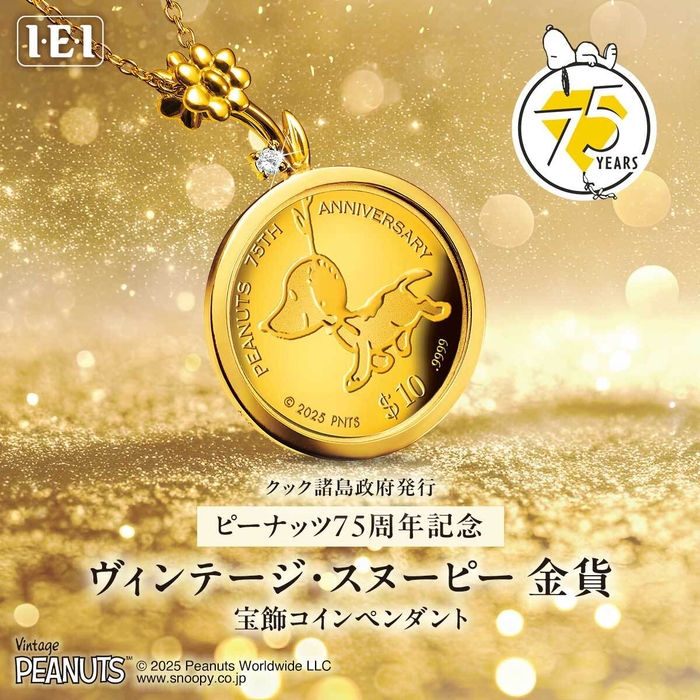 インペリアル・エンタープライズ株式会社(代表取締役社長:原 良郎、所在地:東京都荒川区)は、〈ピーナッツ75周年記念 ヴィンテージ・スヌーピー 金貨 宝飾コインペンダント〉を、I・E・I オリジナルショップにて販売いたします。
