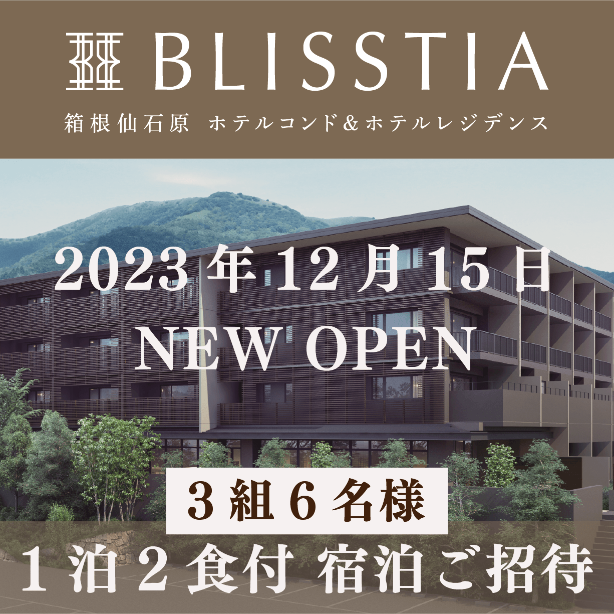 プレゼント内容:BLISSTIA箱根仙石原無料宿泊券(抽選で3組6名様)